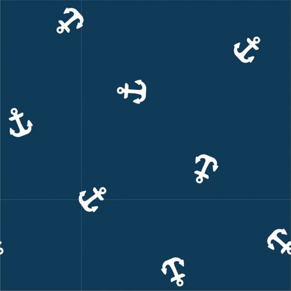 Tissu Jersey Coton Ancres blanches sur fond Bleu marine - Par 10 cm