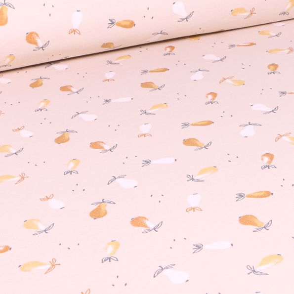 Tissu Jersey Coton Arty Poire sur fond Ecru - Par 10 cm