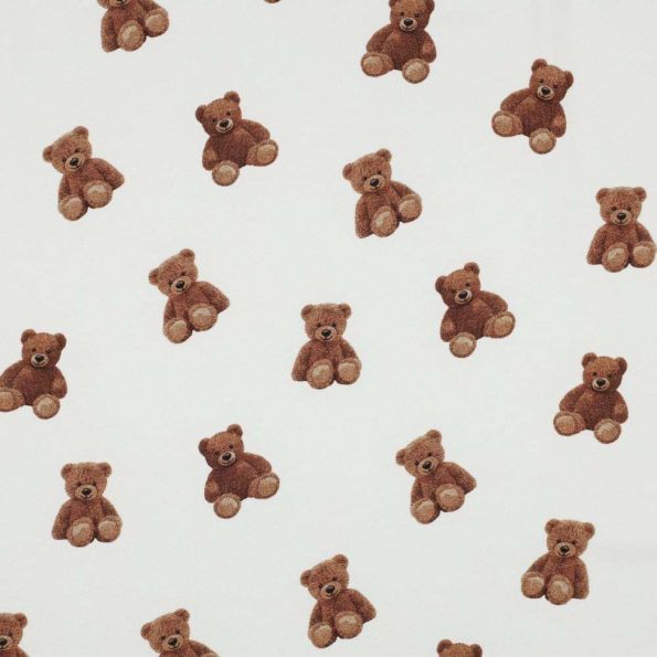 Tissu Jersey Coton Bio digital Ours marrons sur fond Blanc cassé - Par 10 cm