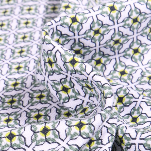 Tissu Jersey Coton Bio Motifs carreaux de ciment sur fond Blanc - Par 10 cm