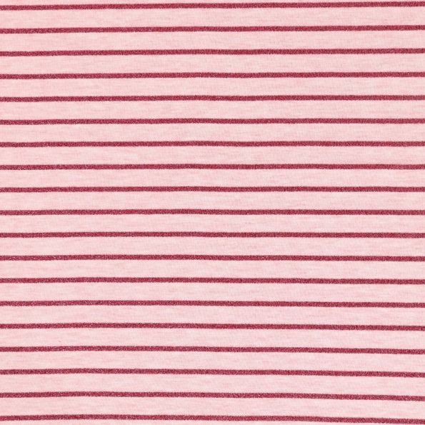 Tissu Jersey Coton Chiné Rayures Lurex Rose fushia sur fond Rose - Par 10 cm