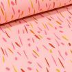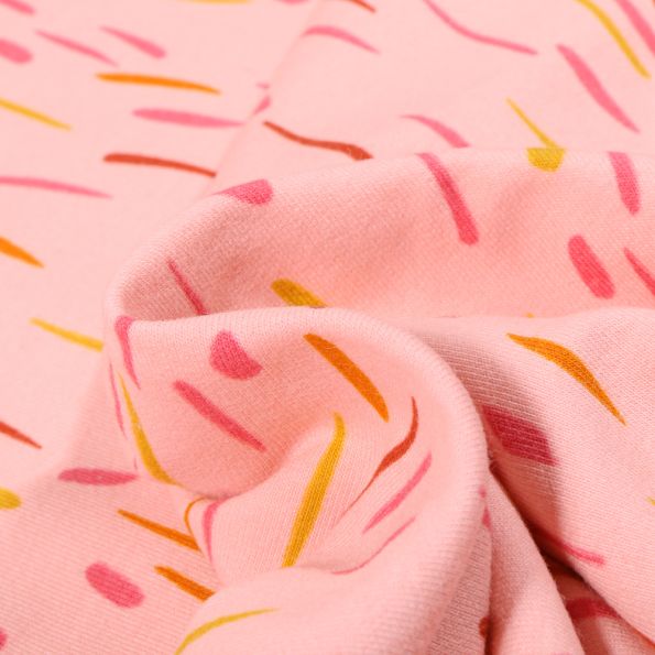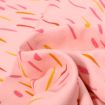 Tissu Jersey Coton envers molletonné Bio Pluie colorée sur fond Rose - Par 10 cm