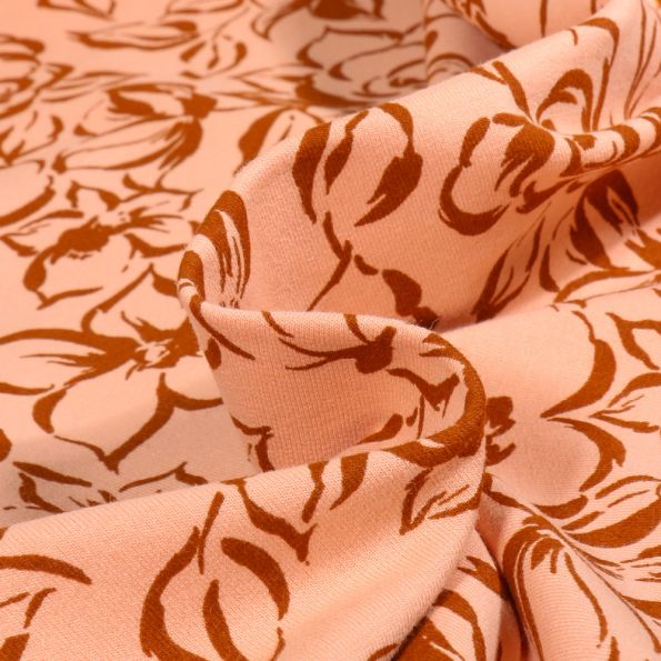Tissu Jersey Coton envers molletonné Florella sur fond Saumon - Par 10 cm