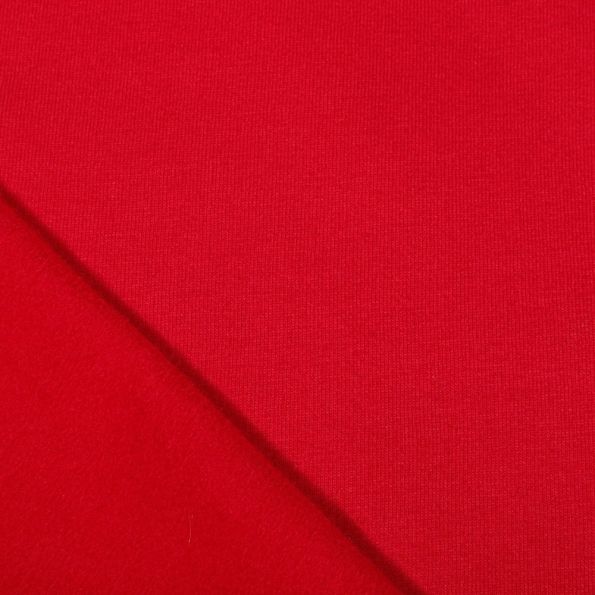 Tissu Jersey Coton envers molletonné uni Bio Rouge - Par 10 cm