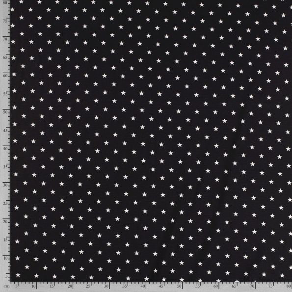 Tissu Jersey Coton Etoiles blanches sur fond Noir - Par 10 cm