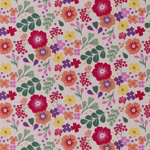 Tissu Jersey Coton Fleuris Dorie sur fond rose Par 10 cm