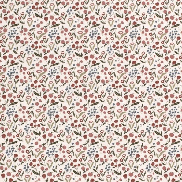 Tissu Jersey Coton Fleuris Loulou sur fond Ecru - Par 10 cm