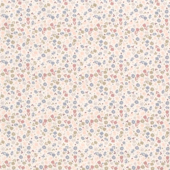 Tissu Jersey Coton Fleurs Louna rose et bleu sur fond Ecru - Par 10 cm
