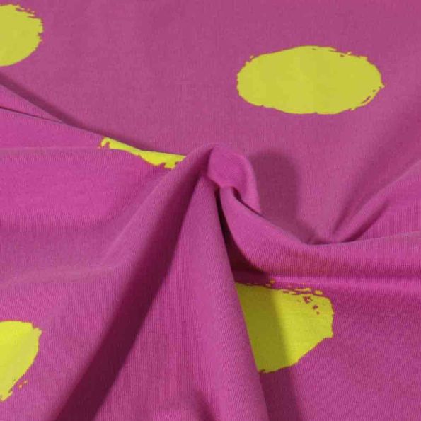 Tissu Jersey Coton Géométrique sur fond Prune - Par 10 cm