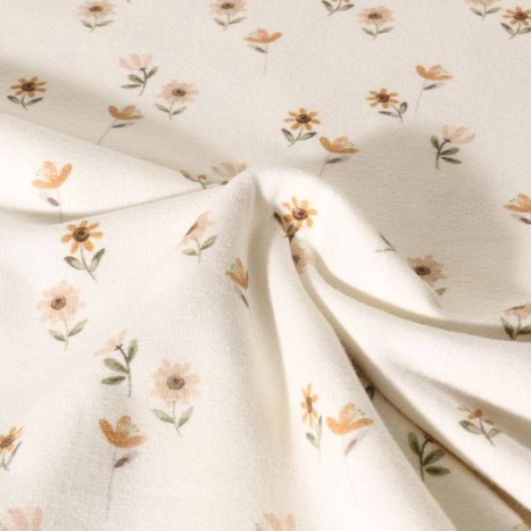 Tissu Jersey Coton imprimé digital Poppy Petites fleurs Poema sur fond Ecru - Par 10 cm