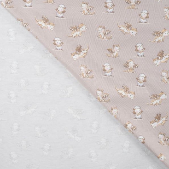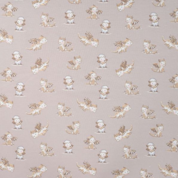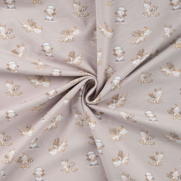 Tissu Jersey Coton imprimé Petits dragons sur fond Beige - Par 10 cm