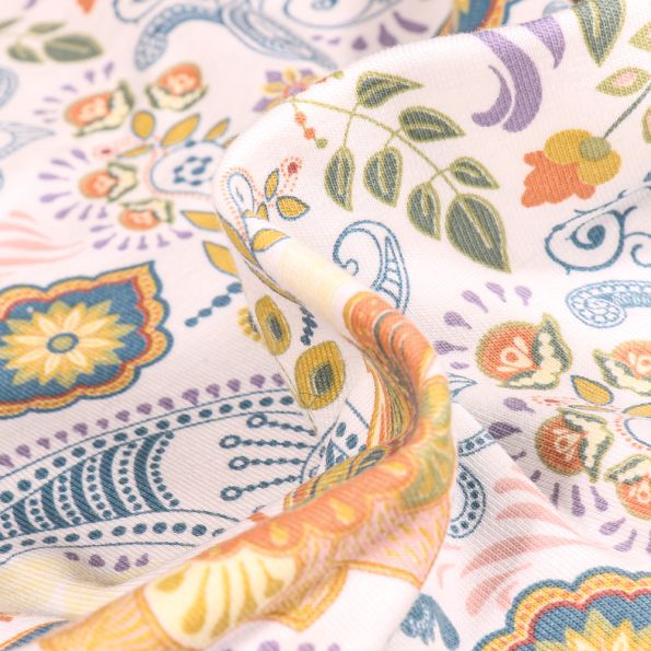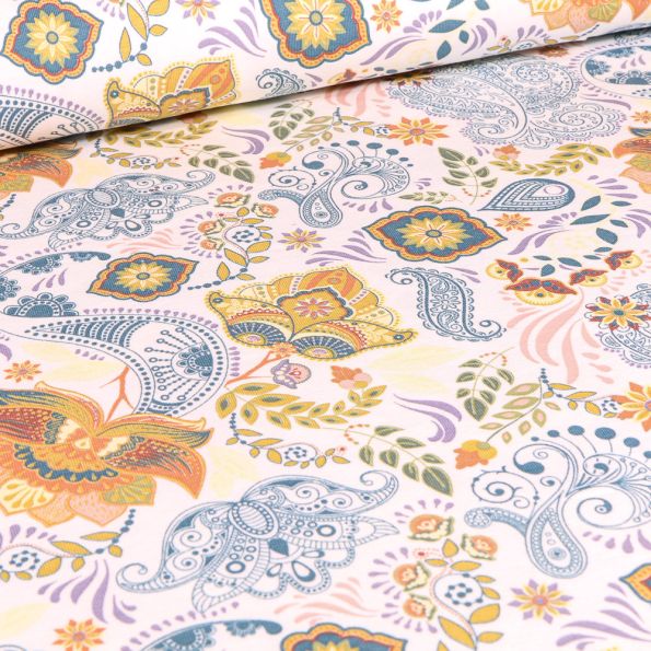 Tissu Jersey Coton Motifs orientaux sur fond Blanc - Par 10 cm