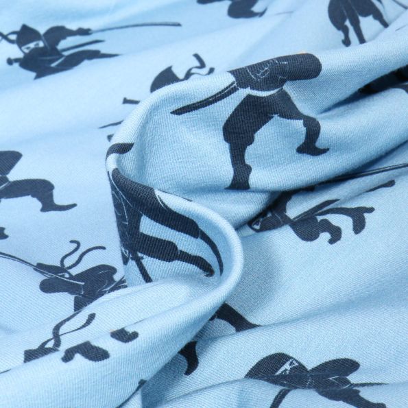 Tissu Jersey Coton Ninja sur fond Bleu - Par 10 cm
