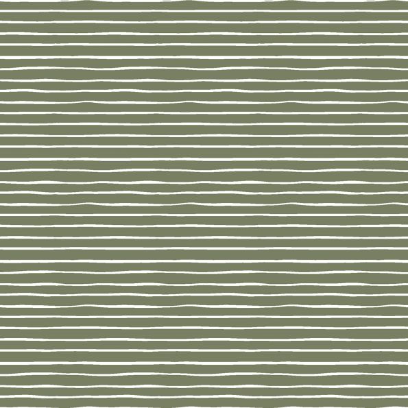 Tissu Jersey Coton Rayé blanc sur fond Vert kaki - Par 10 cm