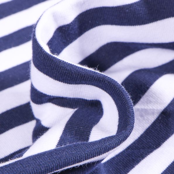 Tissu Jersey Coton Rayures 1cm sur fond Bleu marine - Par 10 cm