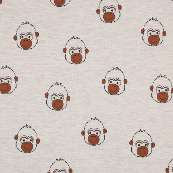 Tissu Jersey Coton Singe sur fond Beige - Par 10 cm
