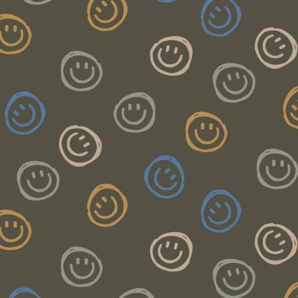 Tissu Jersey Coton Smiley sur fond Vert kaki - Par 10 cm
