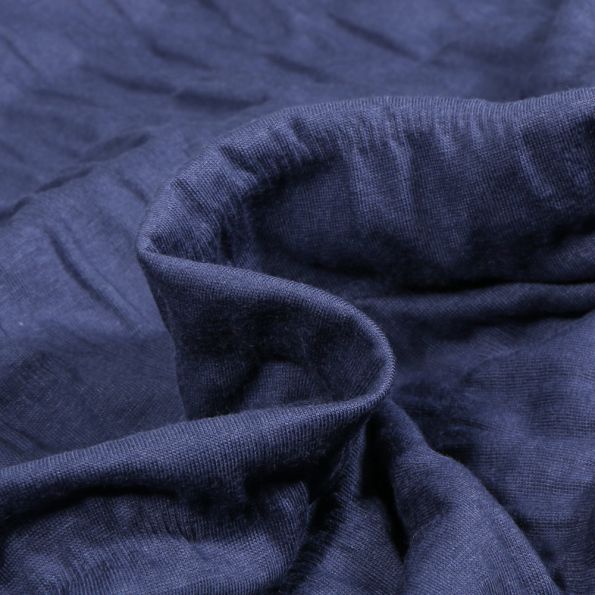 Tissu Jersey Coton smocké uni Bleu marine - Par 10 cm