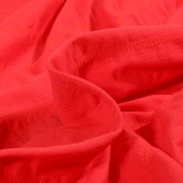 Tissu Jersey Coton smocké uni Rouge - Par 10 cm