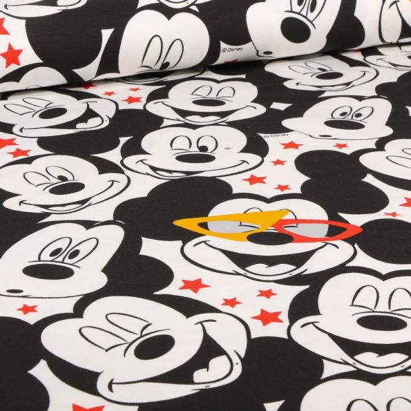Tissu Jersey Coton sous licence Mickey Star sur fond Blanc - Par 10 cm