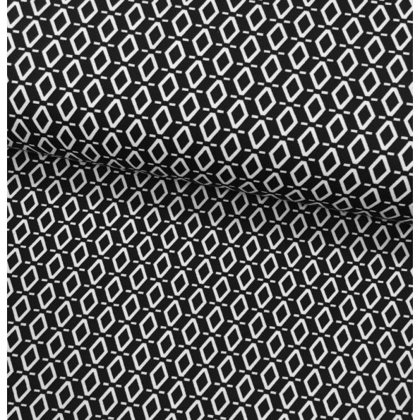 Tissu Jersey interlock Noir Losanges Blancs - Par 10 cm