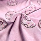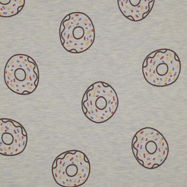 Tissu Jersey Mélangé Donuts pailletés sur fond Ecru chiné - Par 10 cm