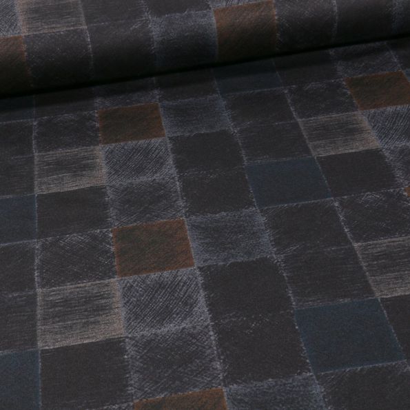 Tissu Jersey Milano Carreaux sur fond Ocre - Par 10 cm