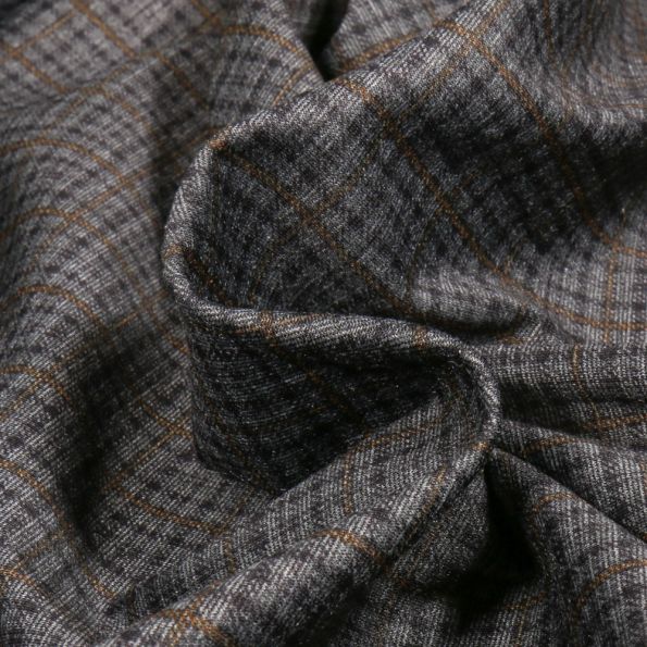Tissu Jersey Milano Checks ocre sur fond Gris - Par 10 cm