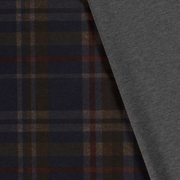 Tissu Jersey Milano peau de pêche motif Tartan sur fond Bleu marine - Par 10 cm