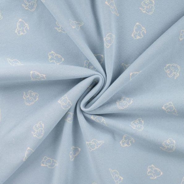 Tissu Jersey Nid d'abeille imprimé Eléphants sur fond Bleu ciel - Par 10 cm