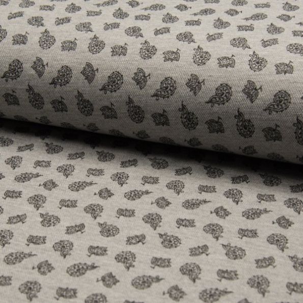 Tissu Jersey Piqué de coton spécial Polo Kashmir sur fond Gris clair - Par 10 cm