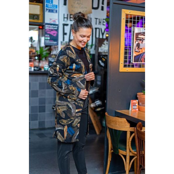 Tissu Jersey Polyviscose Feuilles automne Vert kaki - Par 10 cm