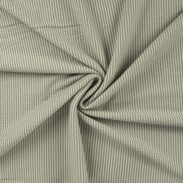 Tissu Jersey Seersucker rayé Vert kaki - Par 10 cm