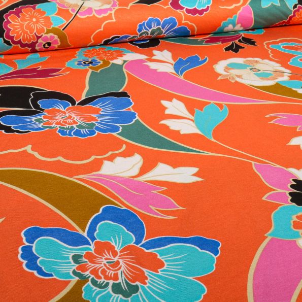 Tissu Jersey Viscose Angoustia sur fond Orange - Par 10 cm