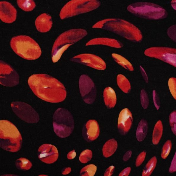 Tissu Jersey Viscose Dots rouges sur fond Noir - Par 10 cm