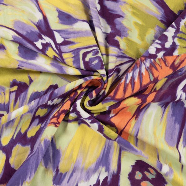 Tissu Jersey Viscose imprimé Butterfly tie and dye sur fond Lilas - Par 10 cm