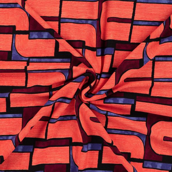 Tissu Jersey Viscose imprimé Lilou rouge sur fond Violet - Par 10 cm
