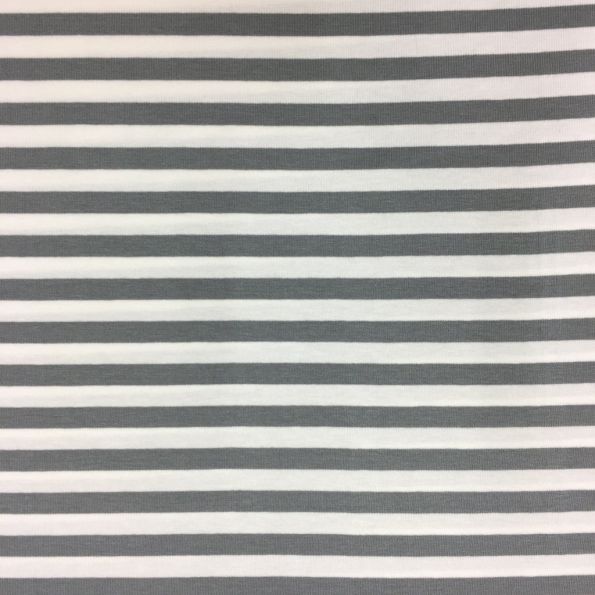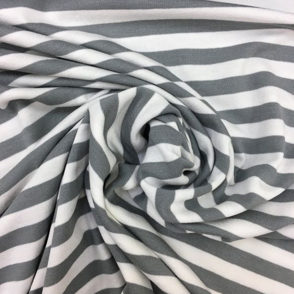 Tissu Jersey Viscose Marinière Rayures 1 cm Gris et blanc - Par 10 cm