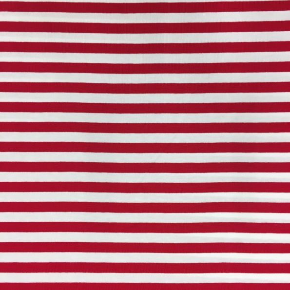 Tissu Jersey Viscose Marinière Rayures 1 cm Rouge et blanc - Par 10 cm