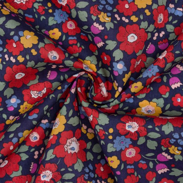 Tissu Liberty of London Tana Lawn Betsy sur fond Bleu marine - Par 10 cm