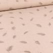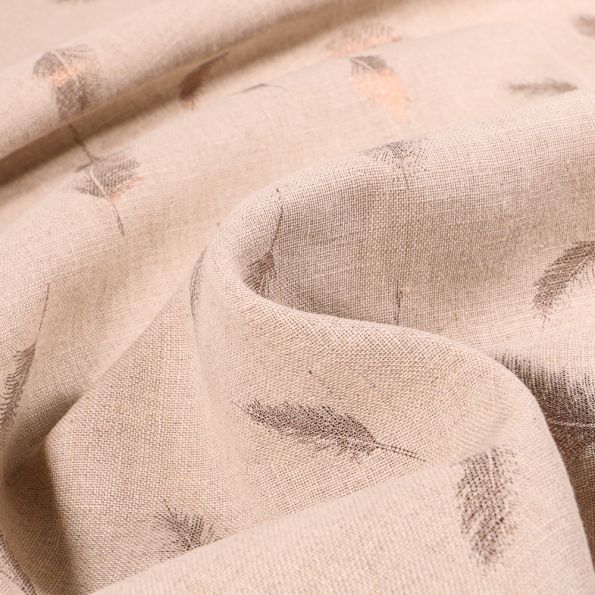 Tissu Lin Coton Plumes métallisées sur fond Beige - Par 10 cm