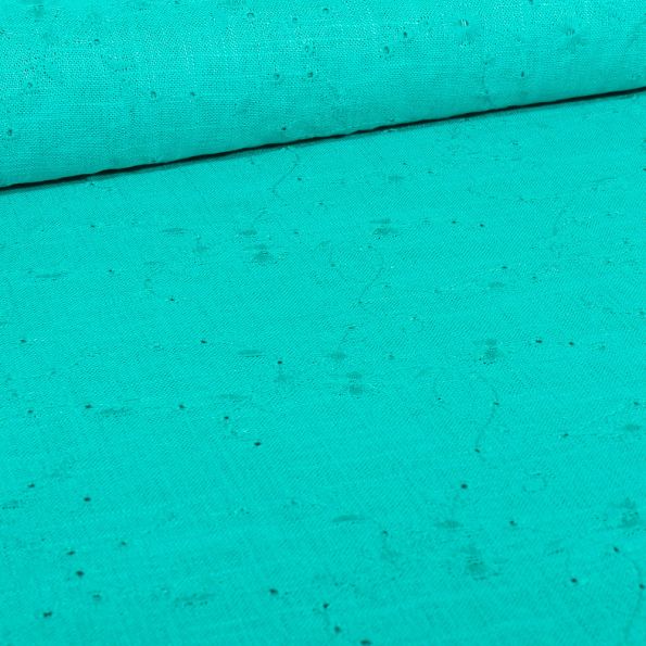Tissu Lin Viscose Enora sur fond Bleu turquoise - Par 10 cm