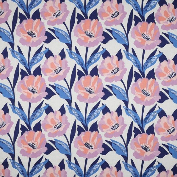 Tissu Lin Viscose Nerida Hansen Pavot sur fond Blanc - Par 10 cm
