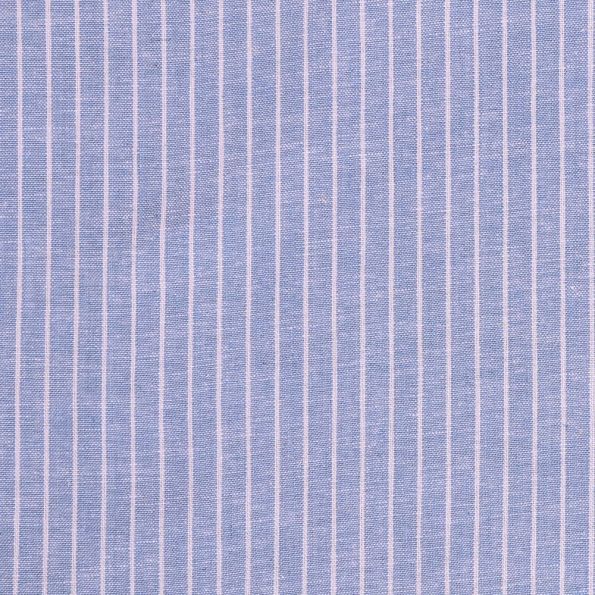 Tissu Lin Viscose Rayures 1 mm Ecru sur fond Bleu chiné - Par 10 cm