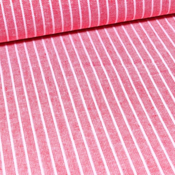 Tissu Lin Viscose Rayures blanches sur fond Rose - Par 10 cm