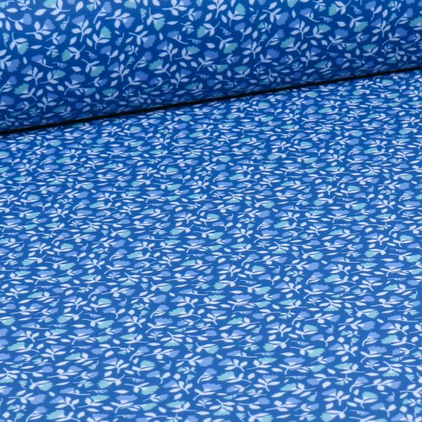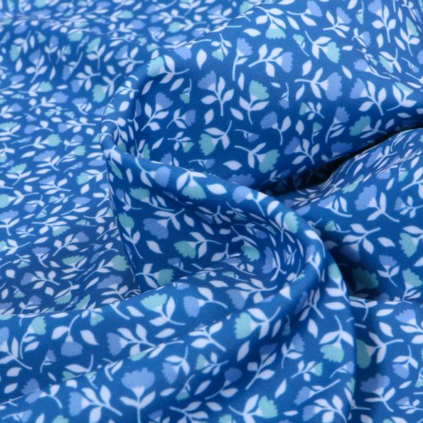 Tissu Lycra maillot de bain Flores sur fond Bleu - Par 10 cm