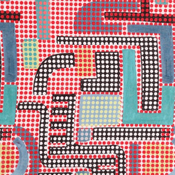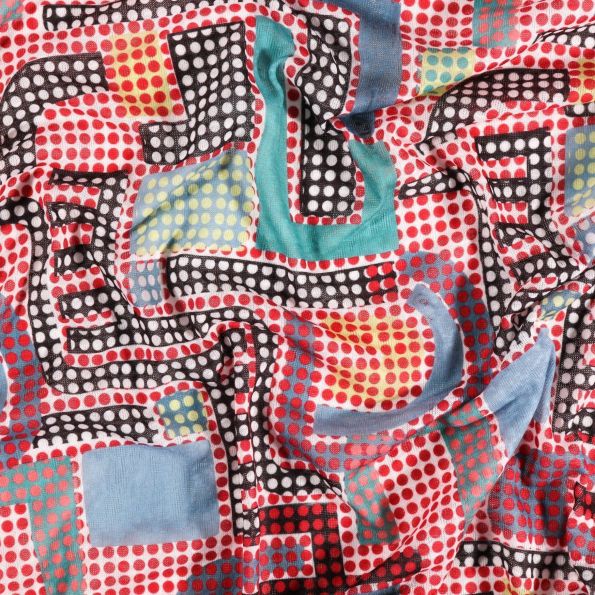 Tissu Maille dévorée Labyrinthe et pois sur fond Multicolore - Par 10 cm