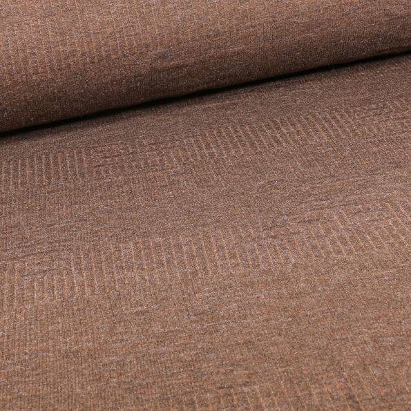 Tissu Maille extensible Texturé rayé sur fond Marron clair - Par 10 cm