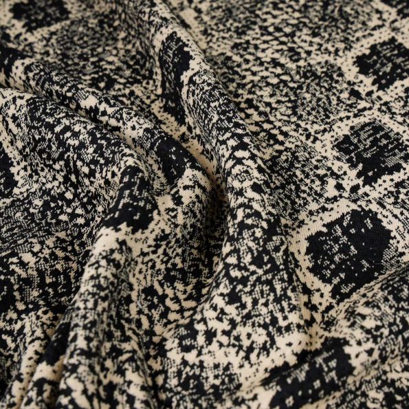 Tissu Maille Jacquard Reptiles beige sur fond Noir - Par 10 cm