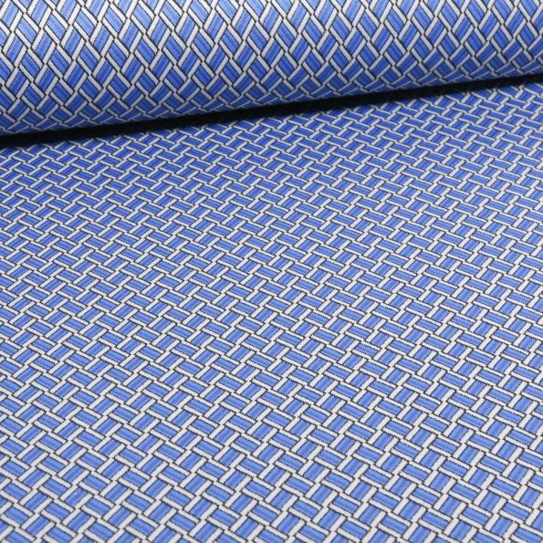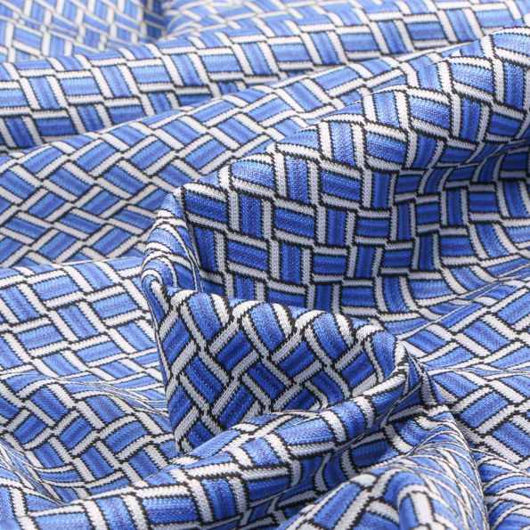 Tissu Maille Jacquard Zig zag sur fond Bleu - Par 10 cm
